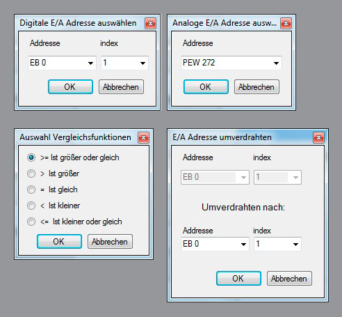 * durch externe Zustimmtaster wie: OK, Abbrechen, Meldeleuchte, Bediener, Anforderung und Störung
