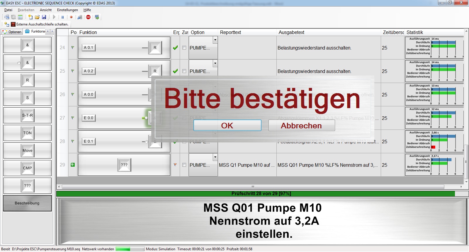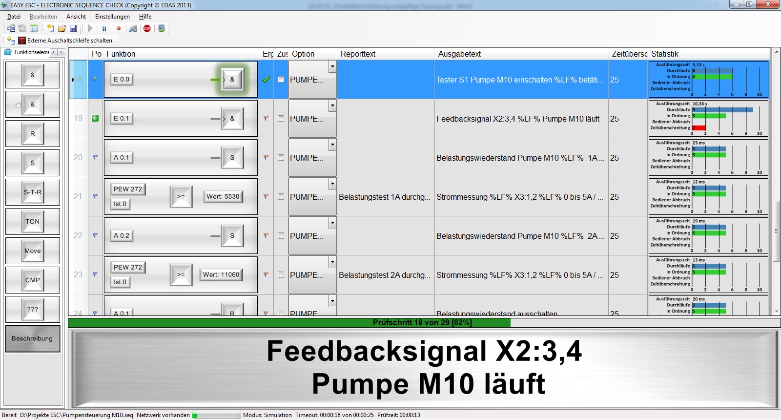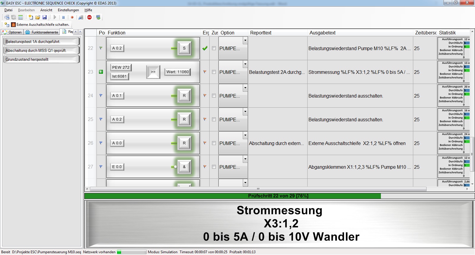 Wir nutzen Funktionselemente aus einer Bibliothek, die eine schrittweise Prüfung des Prüflings ermöglichen. Sie erhalten diese inklusive einer visuellen Anzeige des Ablaufs.